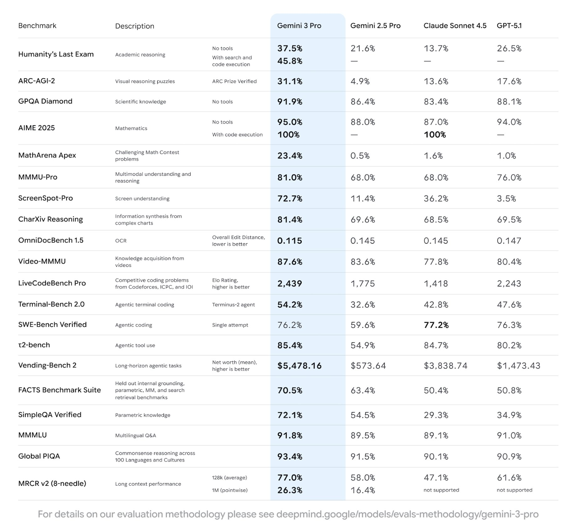 20项Benchmark,19项领先于Claude Sonnet 4.5 和 GPT-5.1。