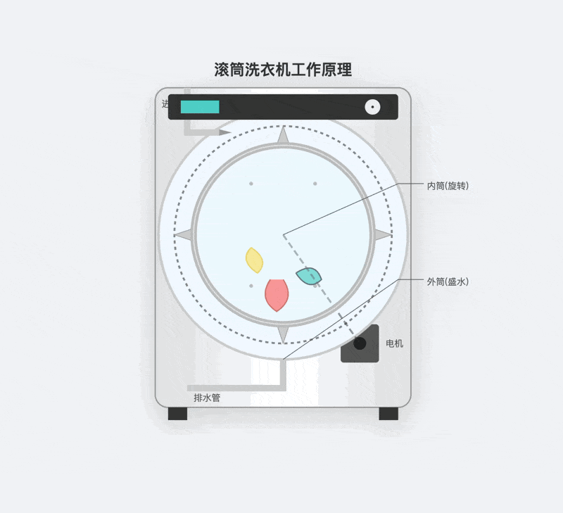 再比如做一个滚动洗衣机的原理,