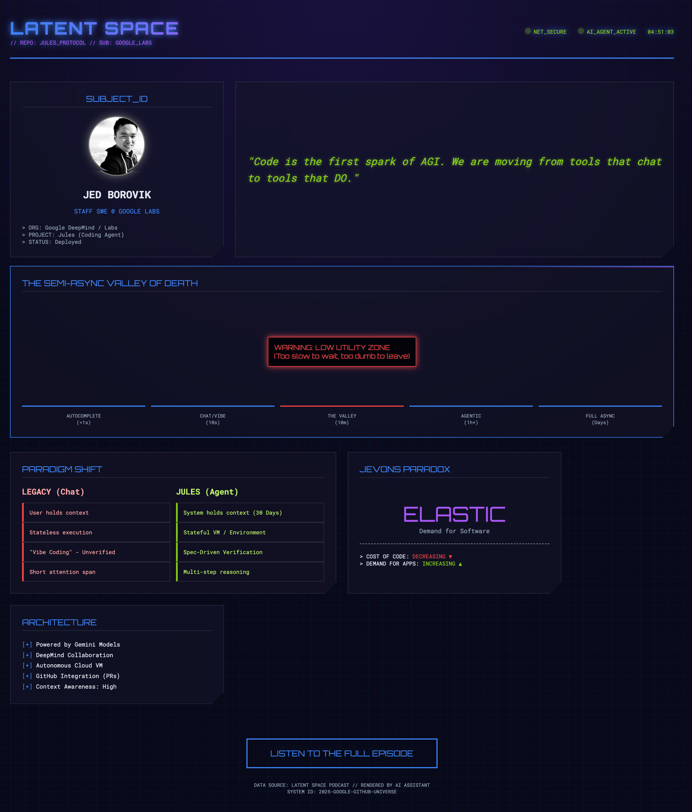 单文件 HTML,含少量内嵌 CSS 动画。重点在用户上传的信息内容的展现以及视觉动效与未来科技氛围。